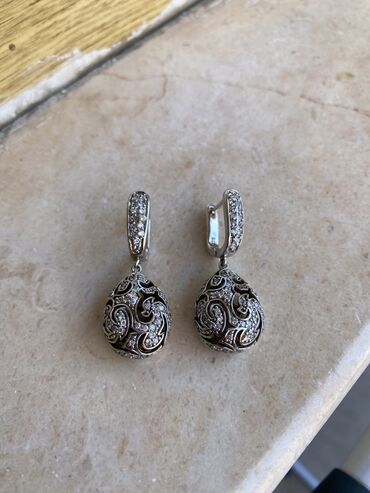 Gümüş sırğa ideal veziyyətdədir. Bütün qaşlari yerindədir. 925 prob. Rodirovka olunub rəngi parlaqdır