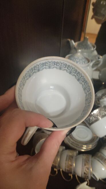 6 nəfərlik kofe dəsti (6 nəlbəki + 6 stəkan) Çin məhsuludur. Yenidir, istifadə olunmayıb. Lakin nəlbəkinin birinin altında kiçik defekt var...