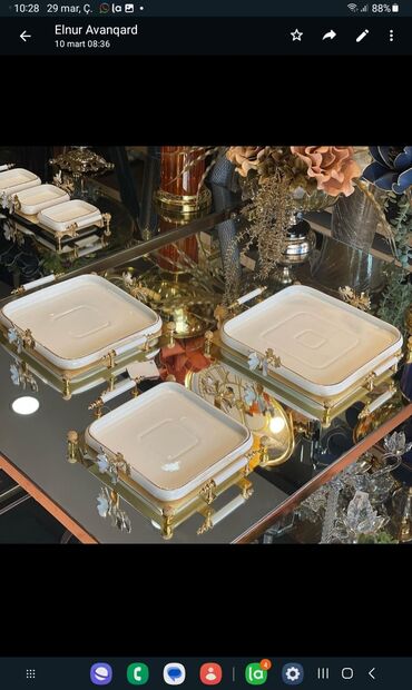 Tort və şiriniyyat qabı, rəng - Qızılı, Şüşə, Türkiyə