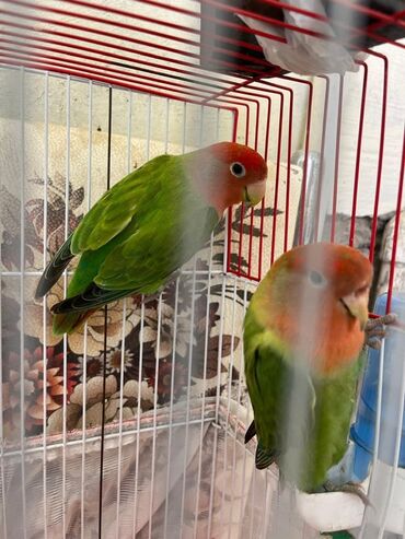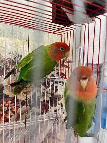 Agapornis (sevgi quşları) cütlüyü və qəfəs dəsti
