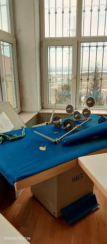 Yamata sənaye tikiş avadanlıqları və aksesuarları - Yamata markalı sənaye tikiş maşını komplekti: möhkəm metal korpus, böyük iş masası, ayaq pedalları, iplik dayaqları və lampalı quruluş. Çoxiplik...
