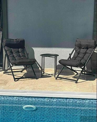 🌟Şezlonq ağ və qara rəngləri var, qatlanma özəlliklidir, daşınması rahatdır. 120 kq daşıma gücü var. 1 ədəd şezlonqun çəkisi 8kq-dır.