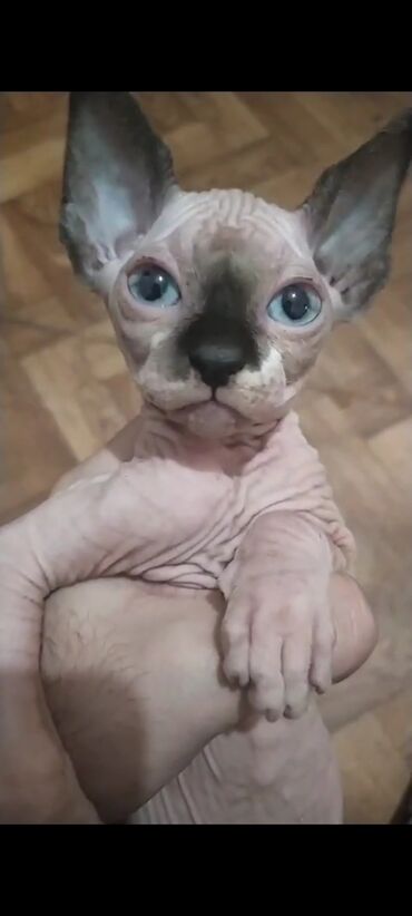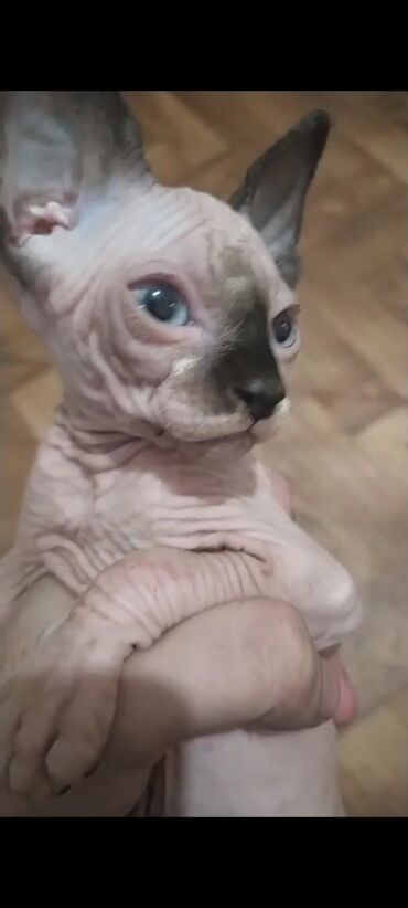 SfinksSfenks pişik balaları – mavi gözlü, qırışıqlı, tüksüz, iri qulaqlı. Satılır 800 manata 3000 lik pişikdir bilənlər bilir sadəcə 2 dənədir pul çatdıra bilmirəm ona görə satıram .Real alıcı olsa cüzi endirim də olunacaq
