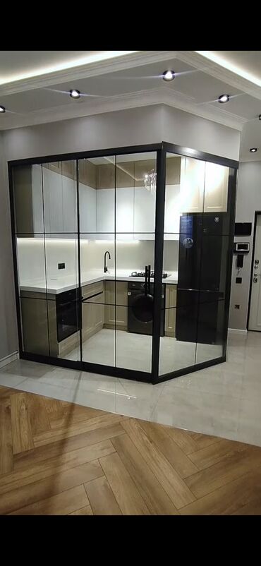 - Mətbəx, zal, eyvan və ofis üçün alüminium profilli, temperli şüşədən dekorativ bölmələr.