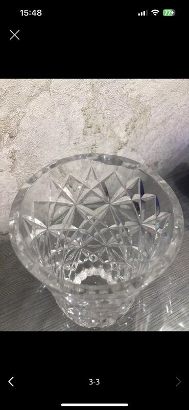 Kəllə-kəsik əl işi kəsmə qedimi xeustal guldan cox agir guldandirqedimi temiz xrustaldir - Material: qalın, şəffaf kristal şüşə - Dizayn: dərin kəsmə ornamentlər, romb və rozet motivləri; işıqda g...