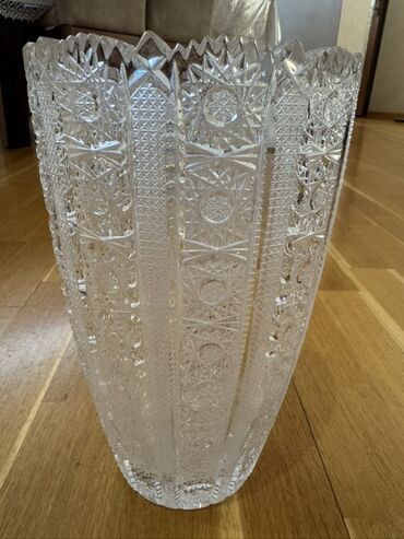SSRİ istehsalı kəsilmiş naxışlı kristal vazalar satılır! Çox gözəl işlənmiş, ağır və keyfiyyətli kristal vazalar dəsti satılır. Hər iki vaza sovet dövrünə aid klassik kəsim üslubunda hazırlanıb. V...