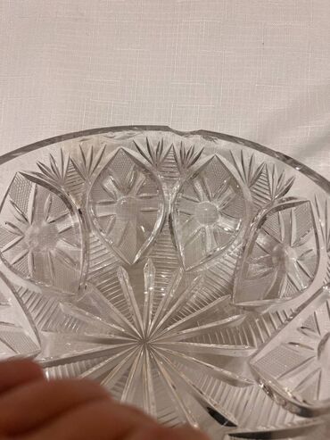 Şəffaf xrustal meyvə qabı. 50 il öncə alınıb. Deffecti yuxarı
