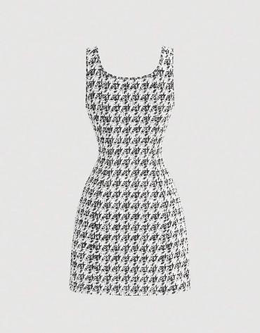 SHEİN TƏZƏ Qadın mini don – qara-ağ “houndstooth” naxışlı, qolsuz