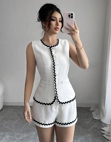 SHEİN TƏZƏ Qadın dəst – ağ rəngli, qolsuz jilet və şort - İki