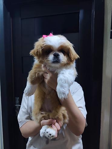 Şi-tsu balası - Cins: Shih Tzu (Şi-tsu) - Rəng: ağ-qəhvəyi ləkəli - Xüsusiyyətlər: yığcam bədən quruluşu, qısa burun, iri qaralma gözlər, ipək kimi yumşaq ikiqat tüklü örtük - Xarakter: mehriban, ...