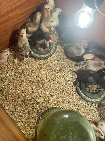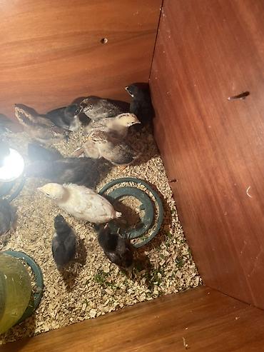 - Brooder şəraitində böyüdülür: istilik lampası, içməli su qabı və yemliklərlə saxlanılır.