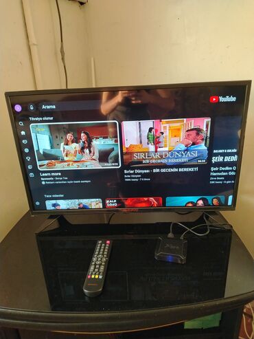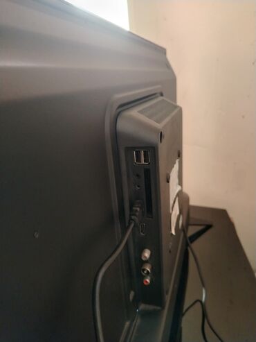 - Qoşulmalar (TV üzərində görünənlər): 2x USB, 3.5 mm AV/Audio girişləri, microSD/CI yuvası (slota bənzər), HDMI, RCA (qırmızı/ağ) çıxışları