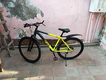 Velosiped – şəhər və yüngül off-road üçün tam avadanlıqlı 180 manata - Markalanma: VeloSonic (çərçivə üzərində yazı) - Təkərlər: 26" dağ tipli dişli şinlər, ikirəngli (yaşıl-qara) disklər - Ötürüc...