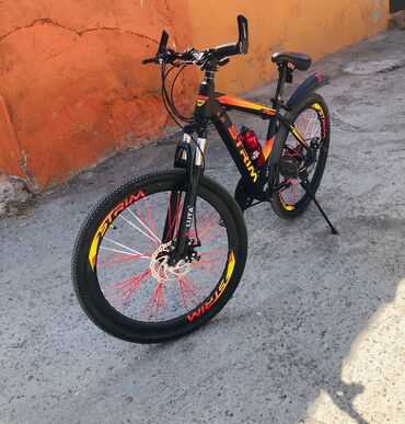 Dağ velosipedi – VEL STORM V1200 (şassi üzərində qeyd) - Çərçivə: yüngül alaşımlı metal, idman/geometriya - Təkərlər: 26" (eni geniş, kipləşmiş protektor – torpaq və şəhər üçün uyğundur) - Asqı: ö...