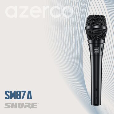 Mikrafon Qara rəngdə Shure SM87A mikrofonu. Bu mikrofon səsyazma studiyaları, canlı ifalar və digər peşəkar audio tətbiqləri üçün idealdır. Yüksək keyfiyyətli səs ötürməsi və davamlı konstruksiyası ilə seçilir. Mikrofon stendə bərkidilmək üçün klipsi ilə birlikdə təqdim olunur.