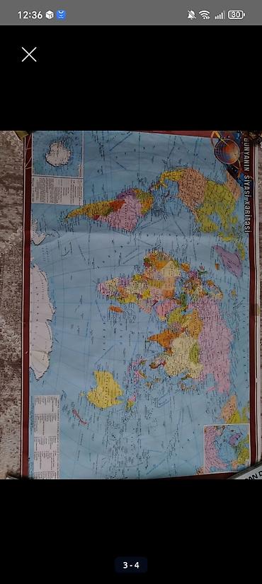Siyasi xəritəsi TƏCİLİ SATİLİR. Tərtəmizdi. Böyük ölçülüdü. 2metr Ünvan-Biləcəri. Metro-avtovağzal.