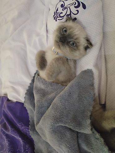 Məhsul: British/siam tipli balaca pişik (gözləri mavi) Xüsusiyyətlər: - Yaş: balacadır (şəkillərdə göründüyü kimi) - Rəng: krem-ağ əsas ton, qulaq, pəncə və quyruqda tünd boz-siyaq “point” işarələ...