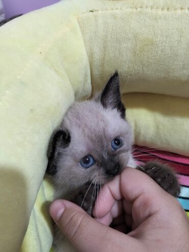 - Xüsusiyyətlər: açıq krem rəngli bədən, tünd qulaqlar, pəncələr və quyruq; iri mavi gözlər.