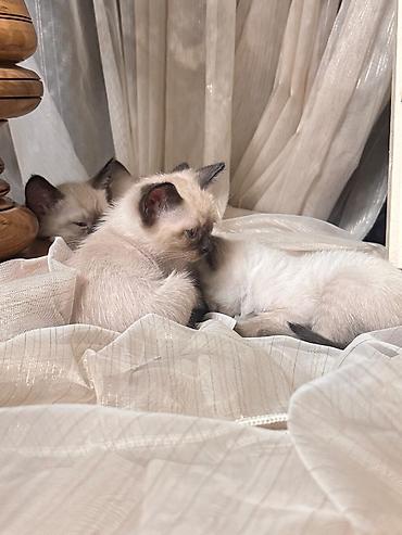 - Növ: siam tipli (şokolad-qəhvəyi qulaq, pəncə və quyruq ucları, krem/bej əsas rəng)