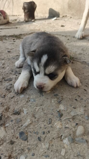 Sibirian Husky balası sarılar erkək qalanları dişi 2 erkən 2 dişi dənəsi 90m - Cins: Husky (Sibirian Husky) - Rəng: boz-ağ tüklü, alnında ağ işarələr, göz ətrafında tünd maska - Xüsusiyyətlər: qal...