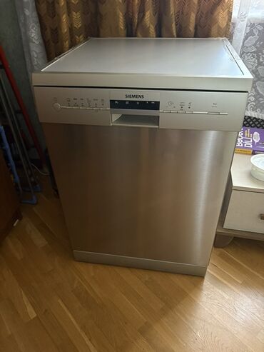 Siemens qabyuyan maşın – tam ölçülü, sərbəst quraşdırılan model. Paslanmayan polad korpus, üst paneldə fiziki düymələr və indikatorlarla idarəetmə. Ön paneldə proqram seçimi və başlama/pauza düyməs...