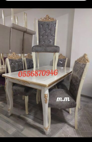 Qonaq otağı üçün, Yeni, Açılmayan, Dördbucaq masa, 6 stul