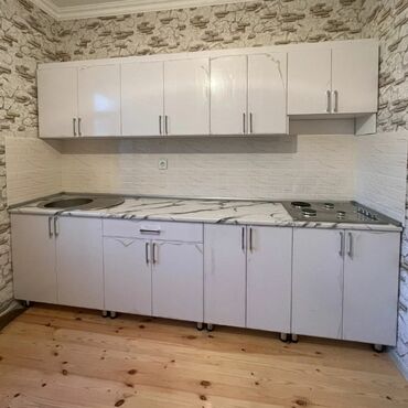 - Mətbəx komplekti: yuxarı-aşağı modullar, yuvarlaq mətbəx çanağı üçün yer, bişirmə paneli üçün niş, geniş saxlanma.