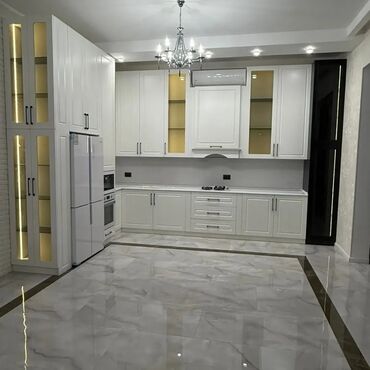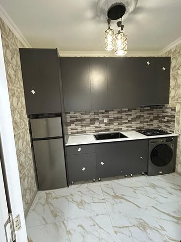- Texnika üçün uyğunlaşdırma: quraşdırılan soba, elektrik/qaz paneli, aspirator, soyuducu, qabyuyan və paltaryuyan üçün yerlər.