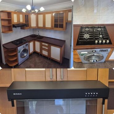 - Texnika üçün yerlər: qaz plitəsi və sobalar üçün inteqrasiya sahələri, aspirator üçün niş, quraşdırıla bilən soyuducu və paltaryuyan/peykan üçün bölmələr, qabyuyan üçün yer.
