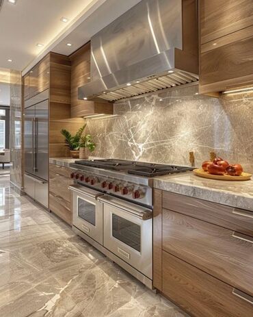 - Daxili texnika üçün nişlər: soba, mikrodalğalı, soyuducu, qaz/induksiya paneli üçün uyğunlaşdırma.