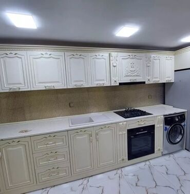 Evinizin ölçüsünə uyğun modullar kombinə edilə bilər: künc kabinetlər, geniş dərin çekmecələr, ət taxtası/aksesuar bölmələri, ədviyyat rafları və s. İşıqlandırma, rəng və tutacaq seçimləri ilə fərdiləşdirmə imkanı. Mətbəxinizdə həm funksionallıq, həm də zərif görünüş yaradan estetik klassik həll.