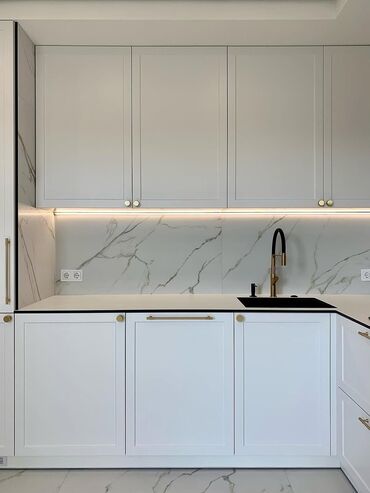 - Səthlər: istiliyədavamlı və nəmə davamlı stolüstülər, mərmər naxışlı divar paneli (fartuk)