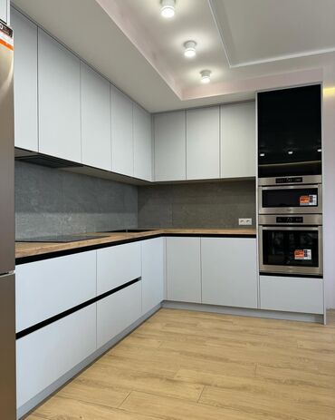 Mətbəx mebeli – modern dizayn və funksionallıq - L‑şəkilli planlama: iş zonasını səmərəli təşkil edir, bucaqlarda əlavə saxlama yeri yaradır. - Üst və alt modul şkaflar: hamar, tutacaqsız və ya mi...
