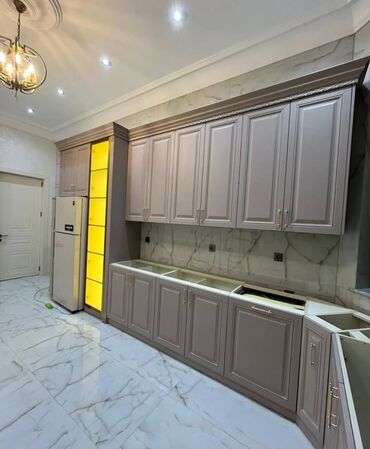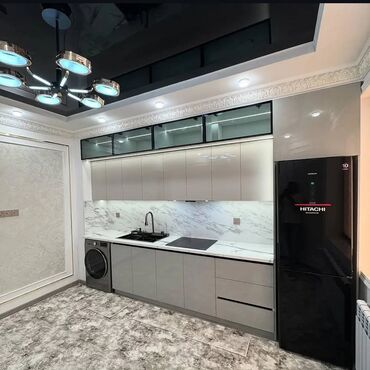 - Quraşdırıla bilən texnika üçün hazır yerlər: soba, qaz plitəsi/induksiya, mikrodalğa, soyuducu, paltaryuyan