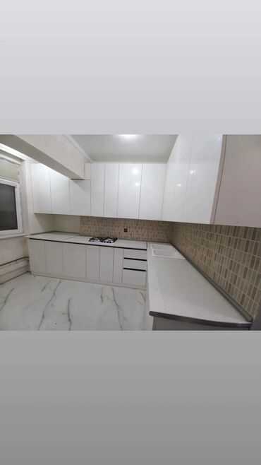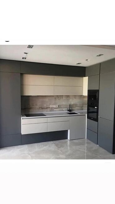 - Materiallar: parlaq və mat fasadlar (MDF/laminat), daş görünümlü iş masaları, keramika və ya mərmər effektli arxa panel həlləri.