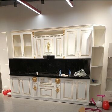 - Texnika üçün yerlər: Daxili soba, qaz və ya elektrik bişirmə paneli, aspirator, qabyuyan və paltaryuyan üçün ölçülərə uyğun nişlər.