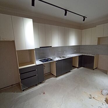 - Materiallar: MDF və MDF-lam fasadlar, yüksək parlaq və mat örtük, HPL/Postforming iş masaları, mərmər naxışlı səthlər, nəmə və zərbəyə davamlı karkas materialları.