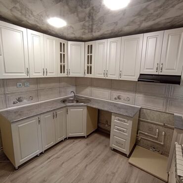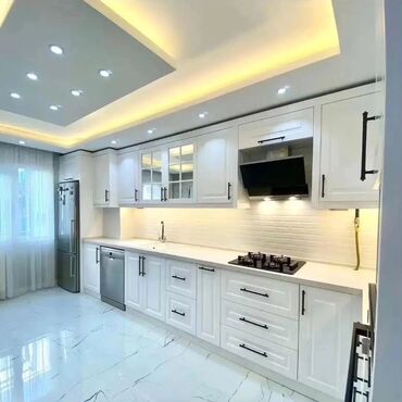- Üst və alt dolab kombinasiyaları, şüşəli vitrin qapılar, künc bölmələri