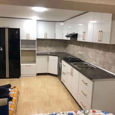 - İnteqrasiya oluna bilən hissələr: qaz plitəsi üçün panel, aspirator bölməsi, soba/soyuducu/çantayuyan üçün yerlər, qabyuyan üçün niş
