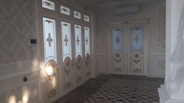 - Qapı və dekor: klassik naxışlı ikiyarpaq otaq qapıları, karniz və pilastrlarla uyğunlaşdırma.