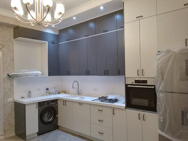 Quraşdırılmış məişət texnikası və santexnika şəkillərdə nümunə kimi göstərilib. Xidmətdə ölçüyə uyğun mətbəx mebeli və interyer qapılarının peşəkar hazırlanması təklif olunur.