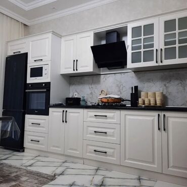 - Saxlama həlləri: Dərin çekmecələr, butulka/separator səbətləri, künc mexanizmləri, gizli sobalı bloklar, üst dolablarda maksimum hündürlük.