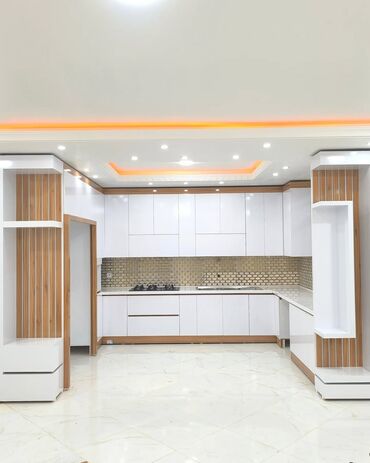 - Əlavə elementlər: Dekor panelləri, açıq rəflər, bitki üçün niş, radiuslu künc həlləri
