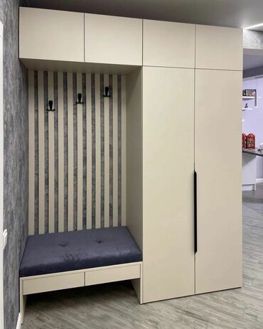 Dəhliz üçün çoxfunksiyalı mebel dəsti - Material: ağac teksturalı laminat - Ölçü: 1.40 m en, 2 m hündürlük, 40 sm dərinlik - Komplektasiya: - Sağda yumşaq oturacaqlı ayaqqabı dolabı (iki qapaqlı...