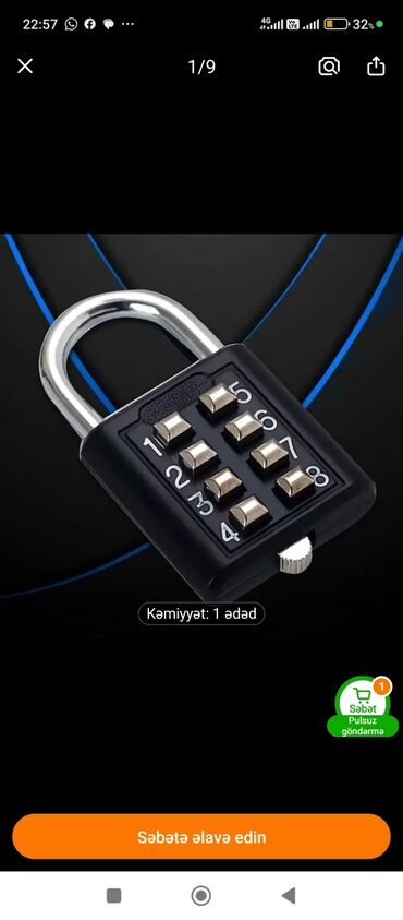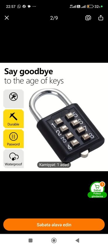 Qutu tərkibi: 1 ədəd şifrəli asma qıfıl.