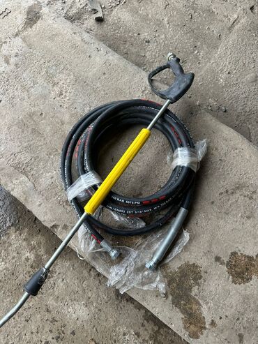 - Komplektdə yüksək təzyiqli şlanq dəsti və tapança: 5/16" W.P. 350 bar (5075 PSI) işçi təzyiqi, metal lans və tutacaqla