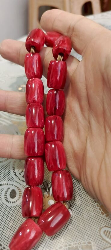 - Dəst tərkibi: Eyni dizaynda iki fərqli rəng variantı (tünd kəhrəba və qırmızı) ayrı-ayrı ipdə