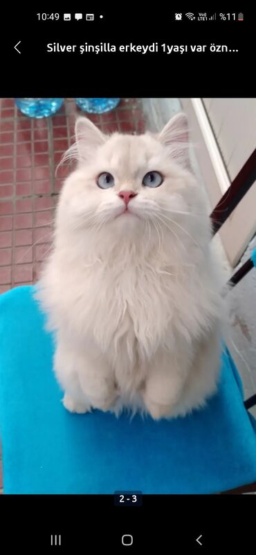Çox zərif görünüşlü, gözəl tüklü Şinşilla Silver erkək pişik satılır. Tam sağlamdır, ev şəraitində böyüyüb. Təmizkardır və tualetə alışıqdır. 1 yaşı vardır. Xarakter olaraq sakitdir, öz məkanını s...
