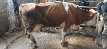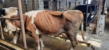 Satılır: inək 3aylığ erkək balası var - Cins: simental (şəkildə göründüyü kimi, qəhvəyi rəng, alnı açıq rəngli) - Buynuzlu, sakit xasiyyətli, otlaqda rahat güdülür - Sağım üçün münasib, süd və bu...