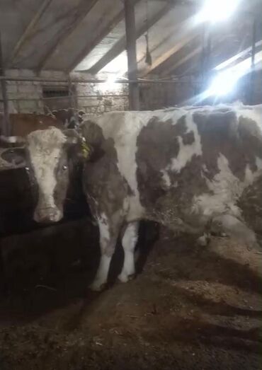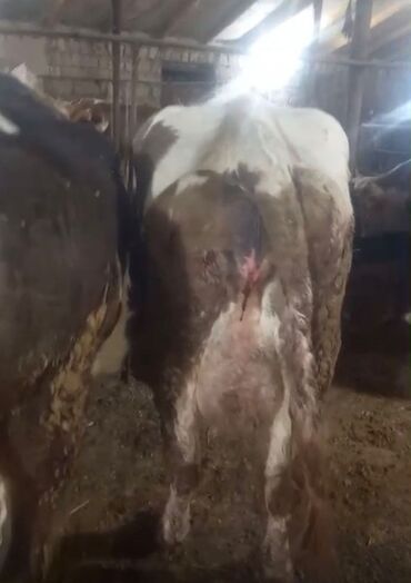 Südlük inək - Rəng: qırmızı-ağ ləkəli 3 ci qarın 8 aylıq boğazdir təmiz səmetaldır təzə doğanda 16 18 litr süt verir yaxşı yaglı sütü var yaxşı yek maldır şekildə görnəkimdi böyük maldır